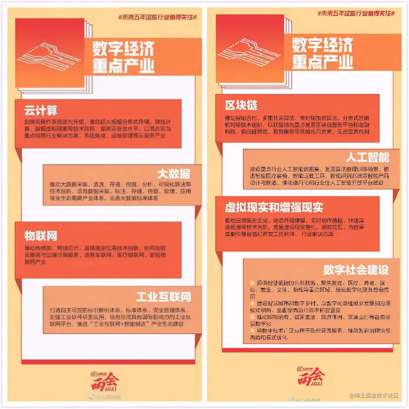 “十四五”规划和2035年远景目标纲要草案提请十三届全国人大四次会议审查。规划纲要草案为你指明方向:数字经济重点产业成为重要一环!