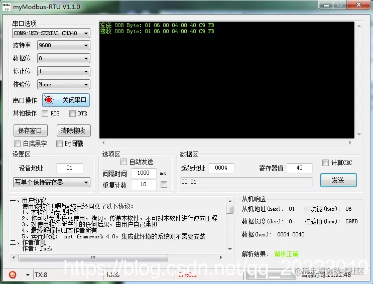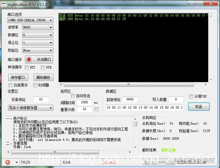 这个虽然没有上面myModbus软件智能,但是灵活性更高,可以自己选择校验格式。