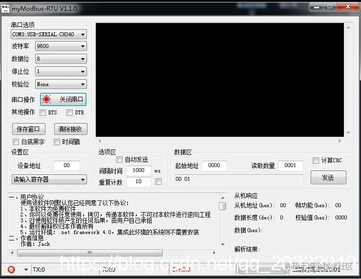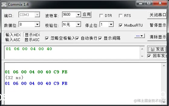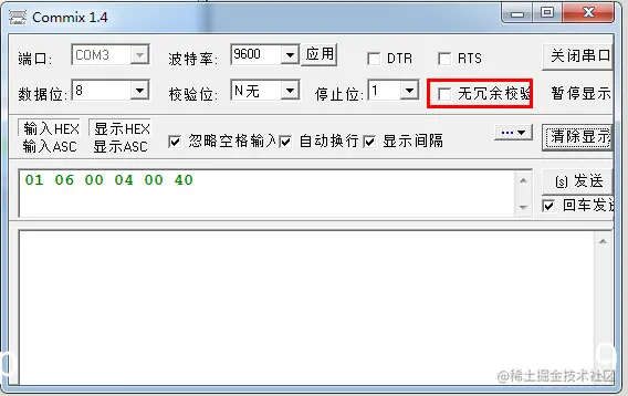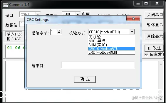 这个也是专门用于modbus协议调试的串口工具,通过无冗余校验选项可以设置校验的格式。
