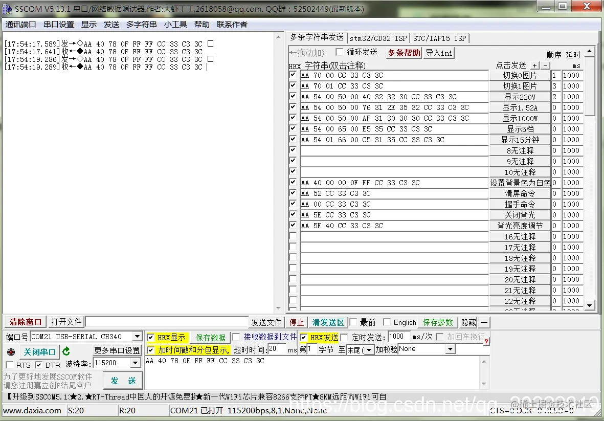 图中是调试串口屏时的命令,在命令比较多的时候,命令添加备注的功能很方便,不用对着文档去找命令了。