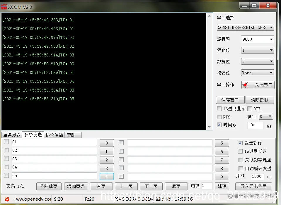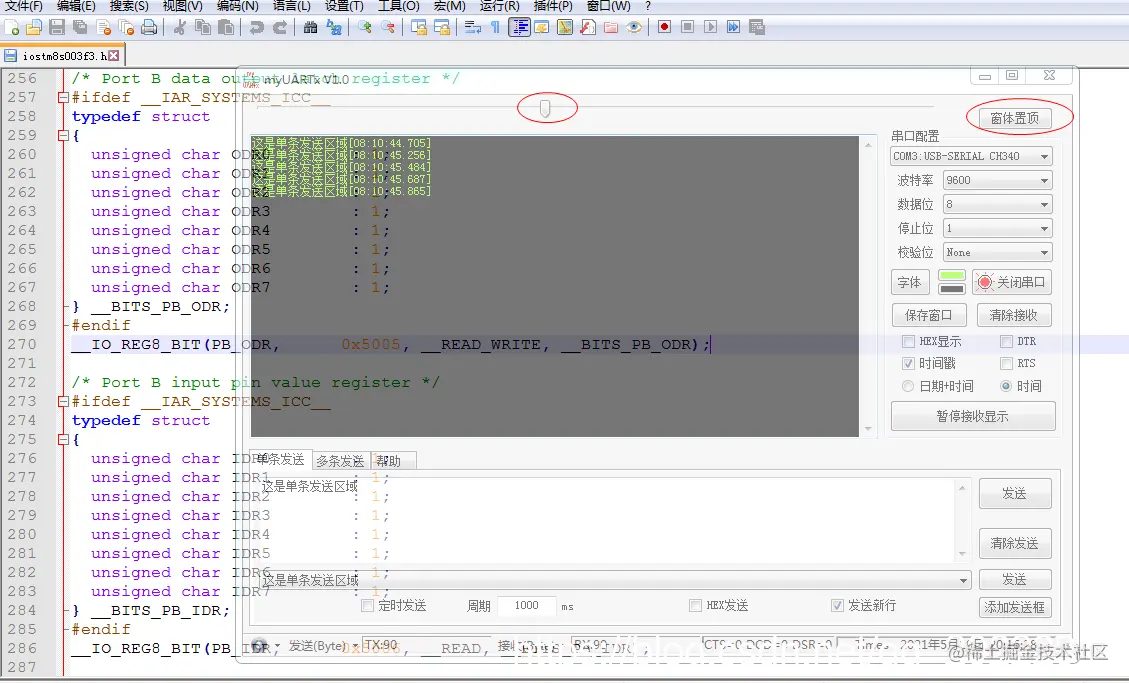 这个串口助手可以单条或者多条发送,比较有亮点的是可以设置窗口的透明度,还可以将窗口置顶。这样在单步调试代码的时候用起来比较方便。一边看代码的执行情况,一边看串口数据。电脑屏幕比较小的时候,就不用来回切换窗口了。
