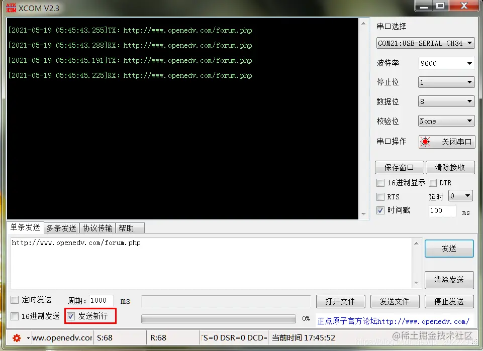 在发送数据的时候,可以自动在数据末尾添加回车换行符。