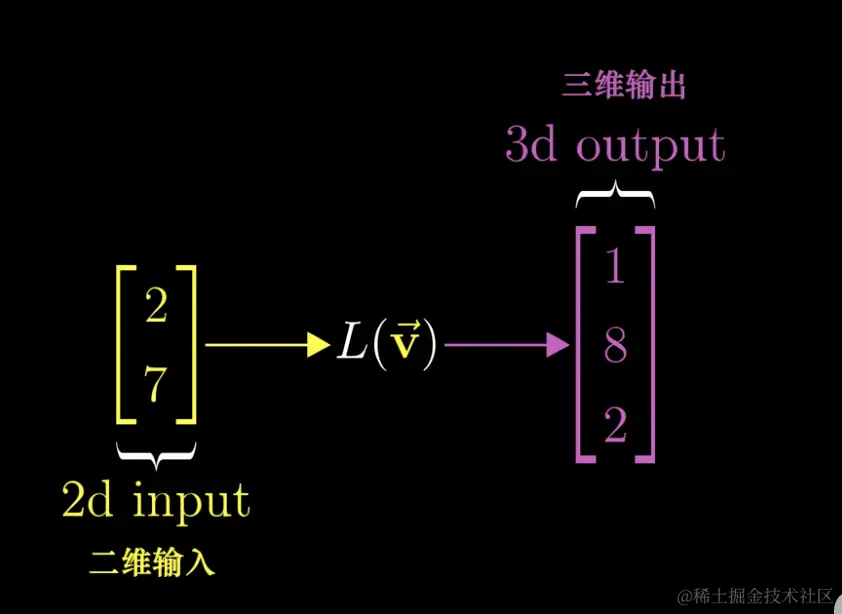 例如我们先来考虑一个二维向量到三维向量的变换。