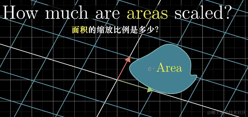 这个特殊的缩放比例,即线性变换改变面积的比例,被称为这个变换的行列式