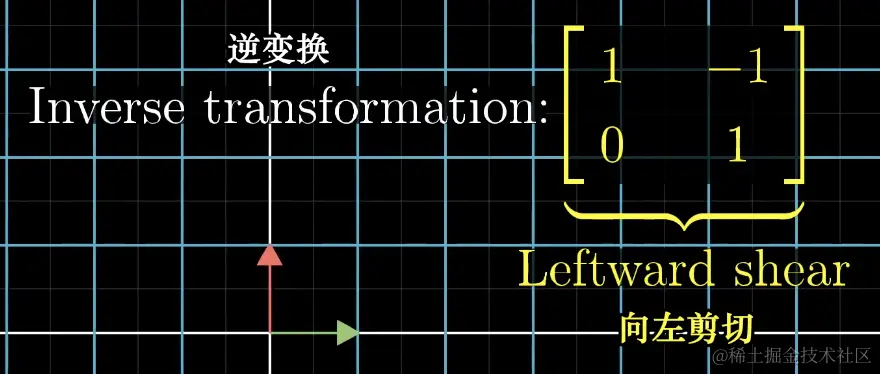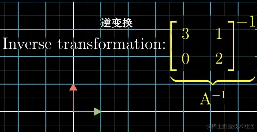 此时我们已经知道了一个线性变换 A 以及变换后的 v 向量,我们需要将 v 向量还原到变换之前的状态,也就是 x 向量,我们需要做出一个相反的线性变换将这个向量变为之前的状态即可。