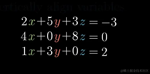 我们将每个未知数对齐,补充好为 0 的系数,此时我们就得到了线性方程组。