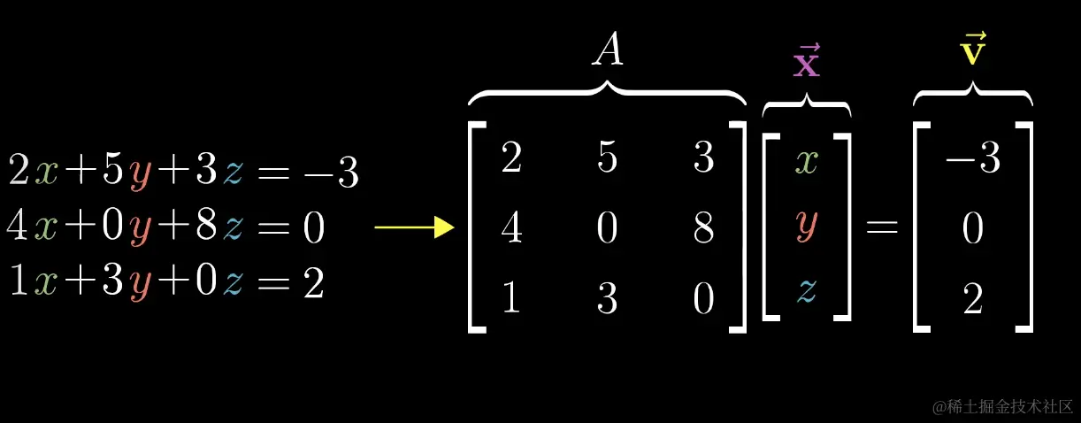 A 代表一种线性变换,我们需要找到一个向量 x 经过 A 的变换后与向量 v 重合。