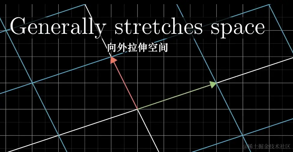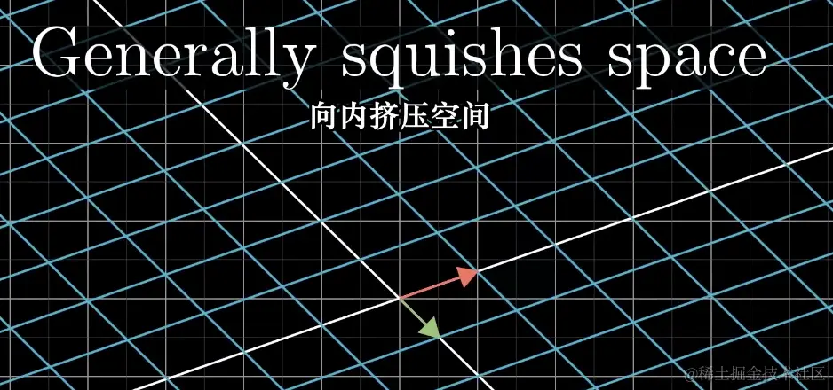 我们现在想象一些线性变换,有一些将空间向外拉伸,有些将空间向内挤压。