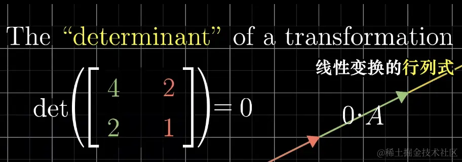 特殊的,当一个行列式的值为 0 的时候,这个变换就将空间压缩到了更小的维度上。