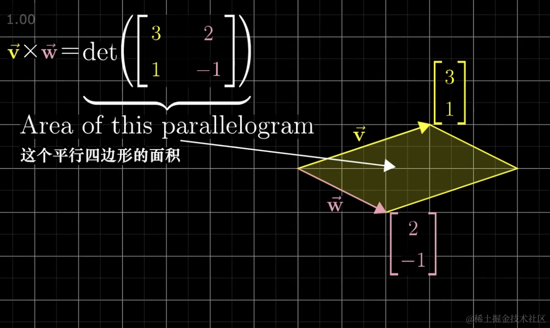 如果我们有两个向量,我们以这两个向量为边做一个平行四边形,这个平行四边形的面积就是这两个向量叉积的结果。