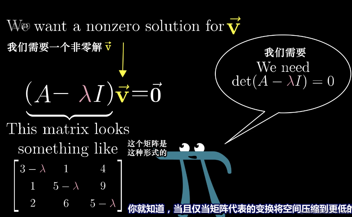 而这个等式的目的在于寻找一个 lambda,把它当作一个线性变换,也就是将调整变换后的空间压缩到一个更低的维度上。