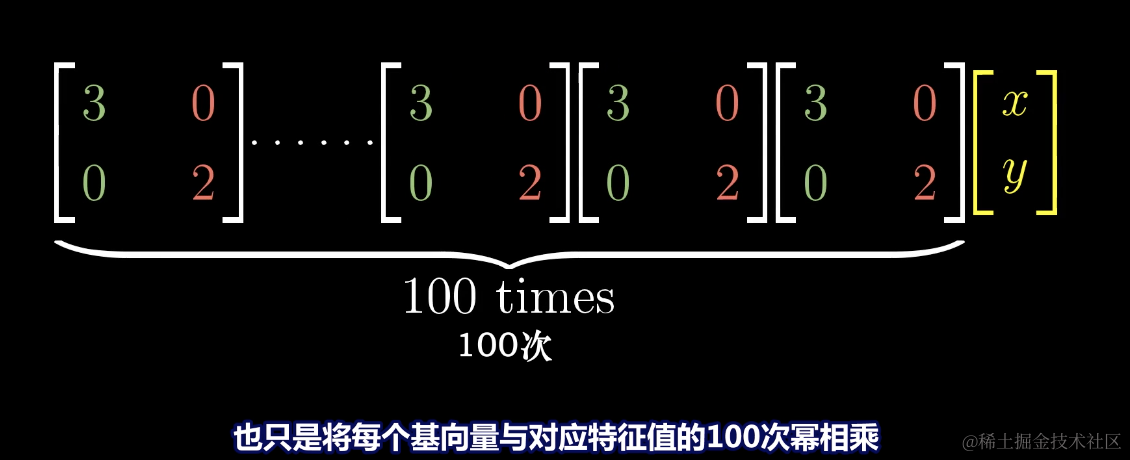 同时,对角矩阵对于矩阵的多次计算非常有用,例如在矩阵多次与自己相乘的结果上更容易计算: