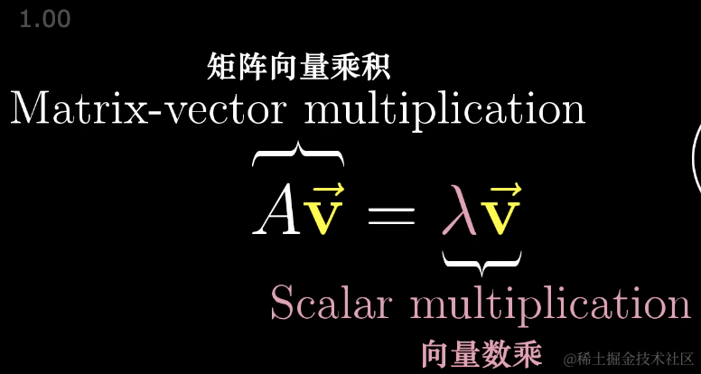 在这个变换中,绝大部分的向量都已经离开了它们张成的空间,但是某些特殊向量的确留在它们张成的空间里,意味着矩阵对他的作用只是拉伸或者压缩而已,如同一个标量。