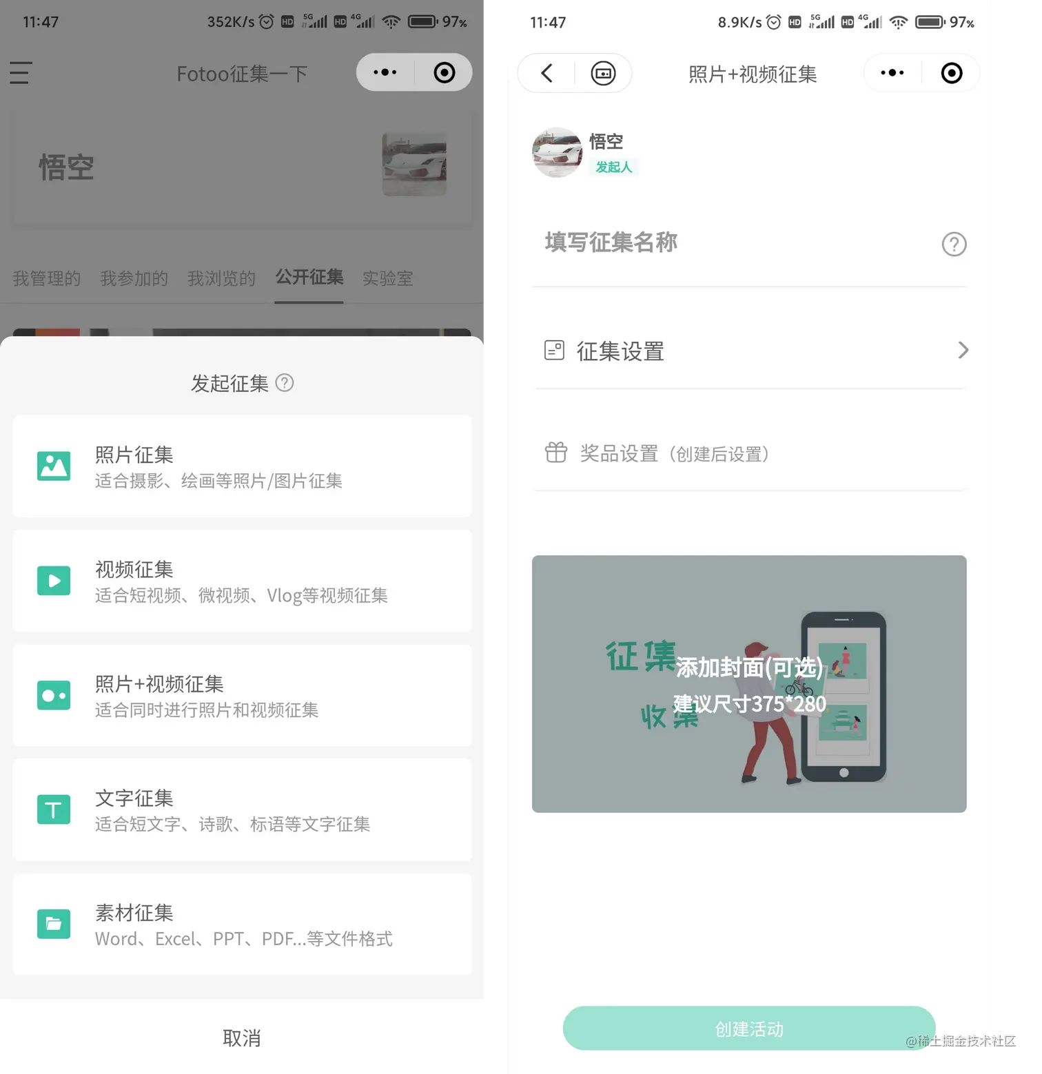 今天给大家推荐一款免费又好用的征集工具【fotoo征集一下】小程序,既可以征集照片、视频、音频、文字、文档,还可以直接在线评选,点赞投票;