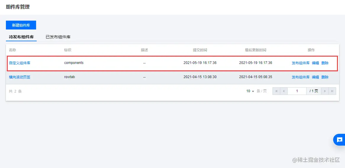 组件定义好后,点击发布: