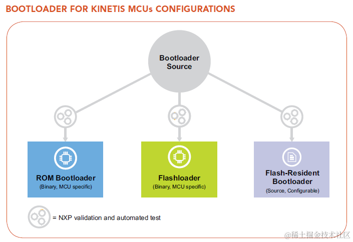 - 对于2014年初及以后问世的Kinetis芯片(比如MKL03、MKL27、MKL43、MKL80、MKE18F等),芯片内基本都是含ROM空间的,因此KBOOT是以ROM Bootloader的形式存在的;
