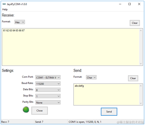 串口调试助手是嵌入式开发里非常常用的小工具,市面上有非常多流行的串口调试工具,比如TeraTerm、SecureCRT、AccessPort、sscom等,其中有些工具功能全面且强大,可以满足大部分串口调试需求,但如果有的时候你有一些特殊定制化的需求,这些工具不一定能满足你的需求,这时候你需要写一个属于你自己的串口调试助手,本系列痞子衡会教大家从零开始写一个基于Python的串口调试工具,这个串口调试工具我们暂且叫她pzh-com,第一个稳定正式版v1.0.0效果如下: