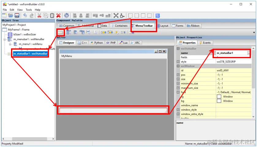 让我们开始创建一个GUI的基础框架,基础框架包括:Frame(外围轮廓)、Sizer(内部控件区)、menubar(顶部菜单栏)、statusBar(底部状态栏)。