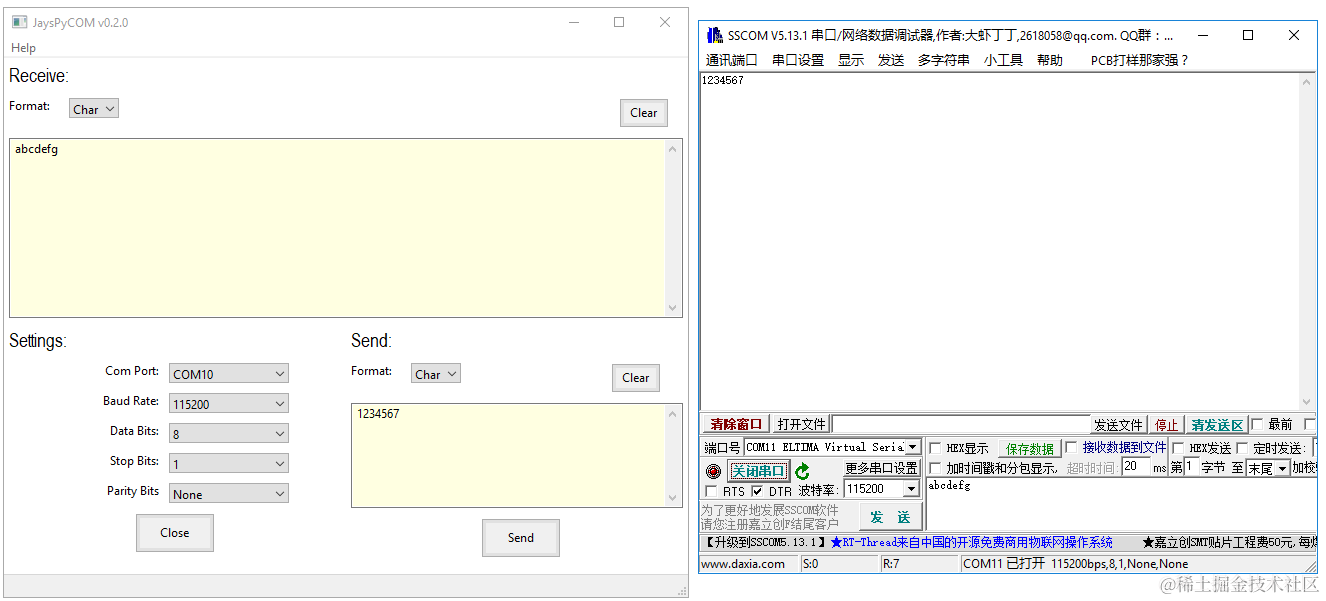 联合sscom测试串口数据收发,可知pzh-py-com基本串口数据收发功能是正常的,最基本的黑盒测试便通过了。