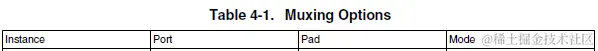 下表是BOOT_MODE相关pinout信息,可在参考手册的External Signals and Pin Multiplexing章节中找到。