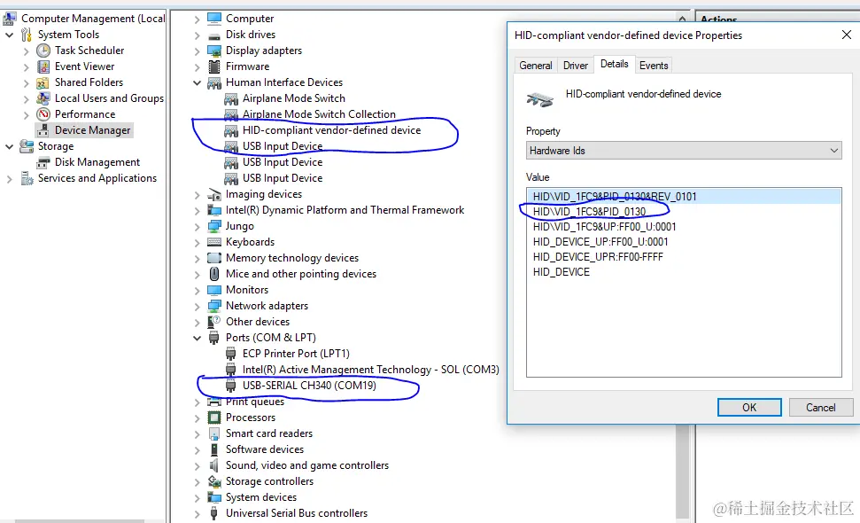 当板子连上USB Cable后可以看到状态变为"HID-compliant vendor-defined device",这表明软件已可以正常使用。