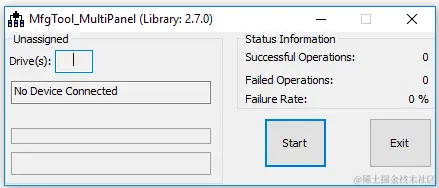 如果板子不连USB Cable,直接打开MfgTool2.exe,可看到如下界面,显示"No Device Connected"。