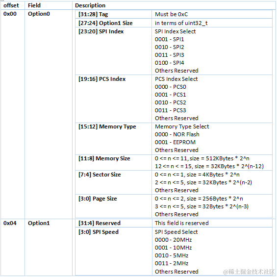 Serial EEPROM/NOR也支持configuration block,只不过configuration block对于BootROM恢复启动而言不是必需的,configuration block结构原型是下面的spi_nor_eeprom_config_t,在本文里暂不使能configuration block。