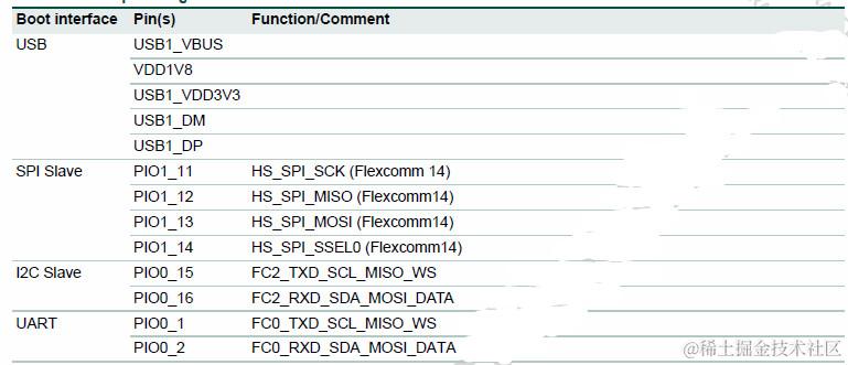 BootROM支持四种通信外设,分别是UART/SPI/I2C/USB-HID(其中UART和USB比较常用),pinout如下(Pinout适用RT600):