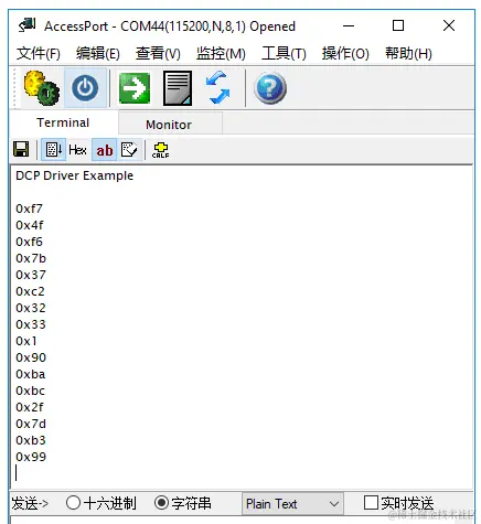 上面的测试对TestAesEcb()函数做了一个简单的修改,将cipher[]值通过串口打印出来,那我们就将程序通过NXP-MCUBootUtility下载到Flash里由ROM来启动运行吧(退出调试状态),我们再来看串口打印,哈哈,终于值变了,这意味着DCP终于拿到了正确的SNVS Master Key(非0)。