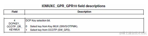 IOMUXC_GPR_GPR10寄存器用于选择Key是来自eFuse SW_GP2还是SNVS Master Key: