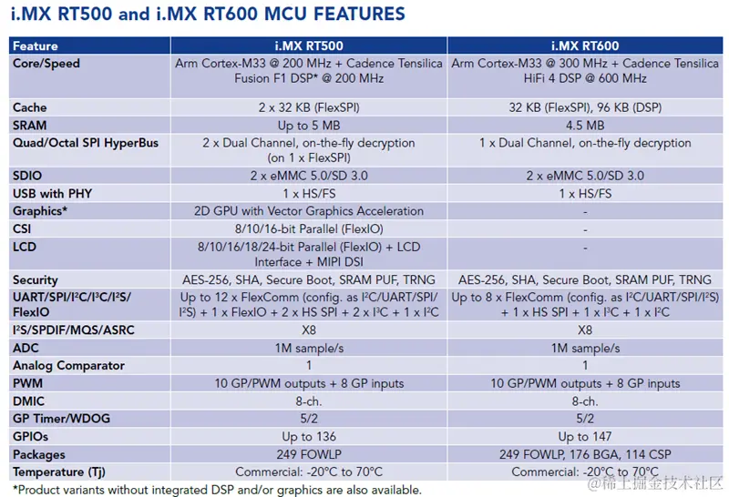 RT500是i.MX RTxxx系列第二款产品,集成中等性能Fusion F1 DSP和2.5D GPU,主打智能可穿戴应用市场。