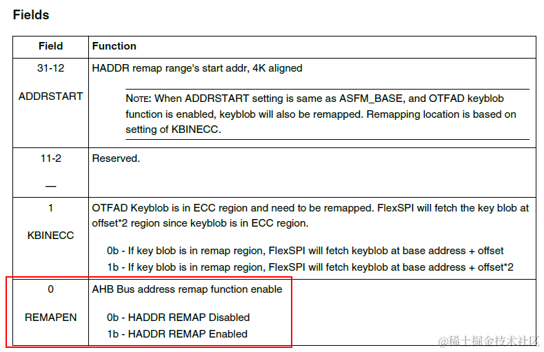 Remap功能及寄存器定义上基本跟i.MX1xxx保持一致,但有一个小区别,就是HADDRSTART寄存器的bit0同时也承担了Remap功能开关控制。