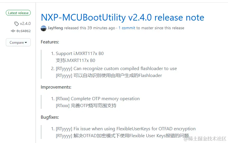 痞子衡维护的NXP-MCUBootUtility工具距离上一个版本(v2.3.1)发布过去2个月了,这一次痞子衡为大家带来了版本升级v2.4.0,这个版本主要有一个非常重要的更新需要跟大家特别说明一下。