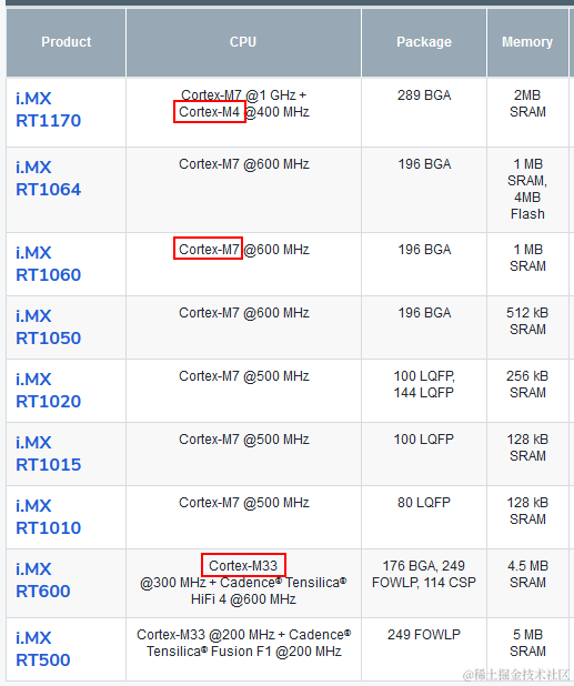 因为超级下载算法要运行于所有i.MXRT型号下,首先我们得知道i.MXRT家族一共有哪些型号、这些不同型号间差异是什么,哪些差异是影响超级下载算法的主要因素。