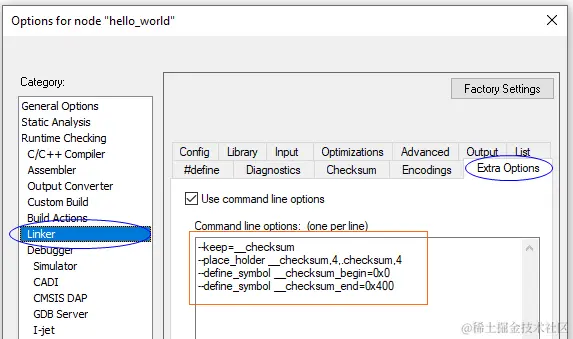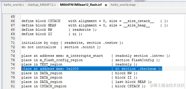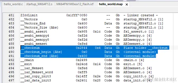 注意:__checksum_begin、__checksum_end符号、__checksum变量、.checksum段四个名字,用户都可以自定义的,这里命名成这样主要是为了和IAR默认定义相统一。