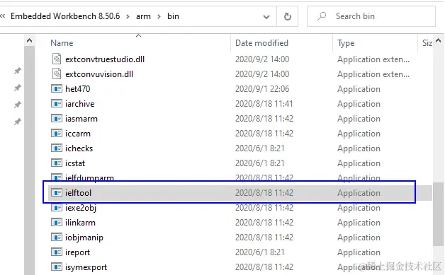 IAR安装目录下有非常多的命令行小工具,这些小工具其实就是IAR的核心,集成开发环境界面只是提供人机交互,其背后的很多功能都是通过调用这些命令行小工具来实现的。其中用于实现CRC校验的功能就包含在ielftool.exe工具里:
