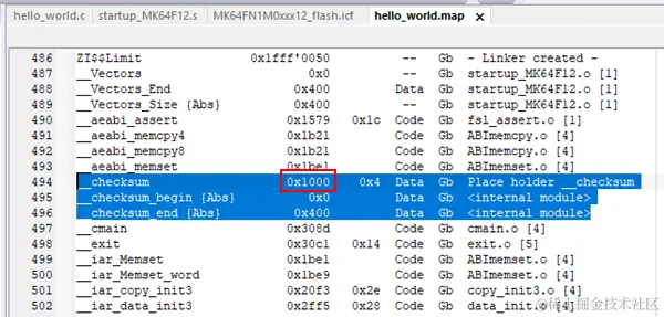 再一次编译工程,查看map文件,这次__checksum被放在了我们指定的0x1000的位置。