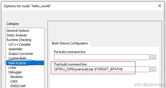 现在让我们来解决我同事遇到的Post-build下.bin和.out里CRC校验值不一致问题,显然无法直接使用工程选项Output Converter功能了,因为它在IAR里执行顺序没法改变。
