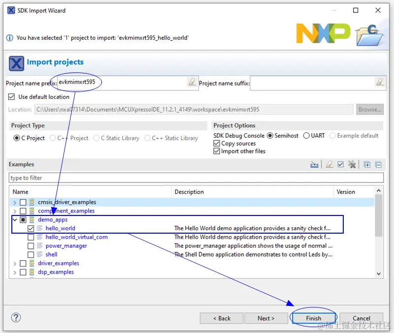 - Import SDK example(s): 从恩智浦SDK包里导入示例工程