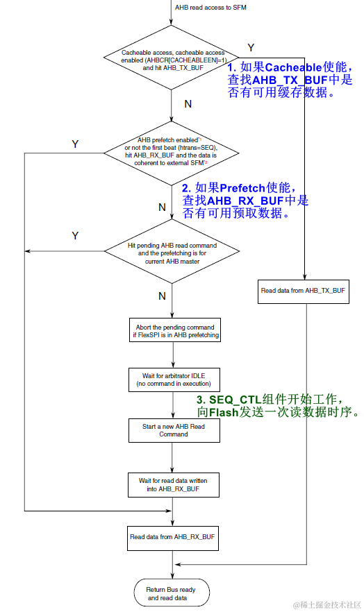 即便L1 Cache里没有缓存到CPU所要指令,如果FlexSPI本身的Cacheable和Prefetch功能打开的话,AHB RX/TX Buffer里可能也会缓存CPU所要指令。如果所需指令确实缓存在AHB Buffer里,SEQ_CTL仍然不会工作。