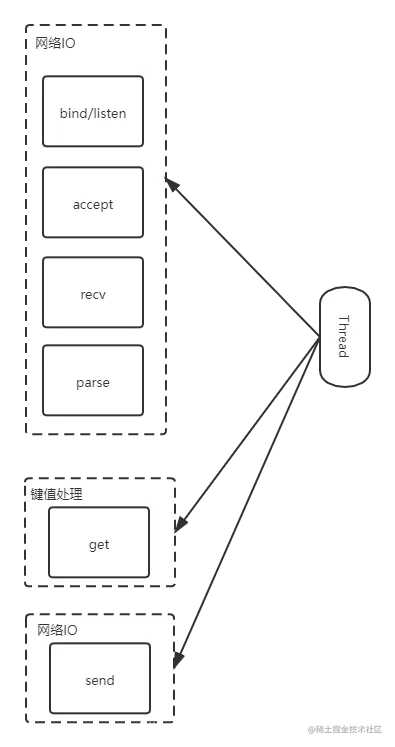 通常来说Redis是单线程,主要是指redis的网络IO和读写键值对是由一个线程完成的。这也是redis对外提供键值存储服务的主要流程。但是其它功能,比如持久化,集群数据同步等,其实是由额外的线程执行的。