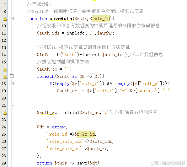 2. 收集权限信息在RoleModel模型里边保存