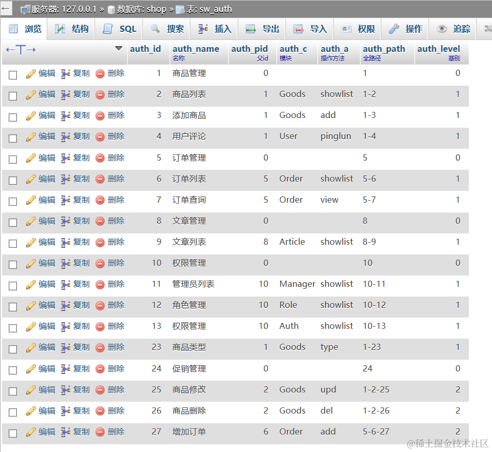 2. 维护权限数据,添加权限