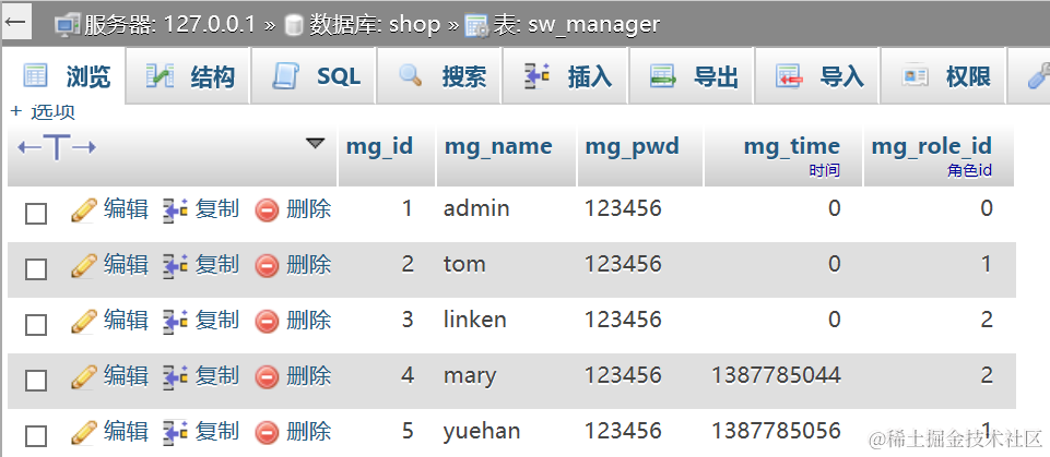 sw_manager 后台用户管理员表