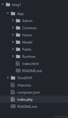 1、当你 require ThinkPHP之后,会自动在App目录下生成 common, Home, Runtime 三个文件夹。