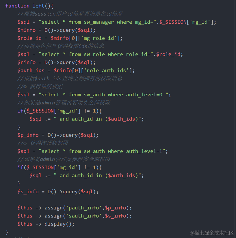 - 用户登录系统显示权限信息 $_SESSION[‘mg_id’]