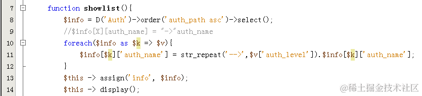 4. 展示分配权限信息的表单对应控制器部分: