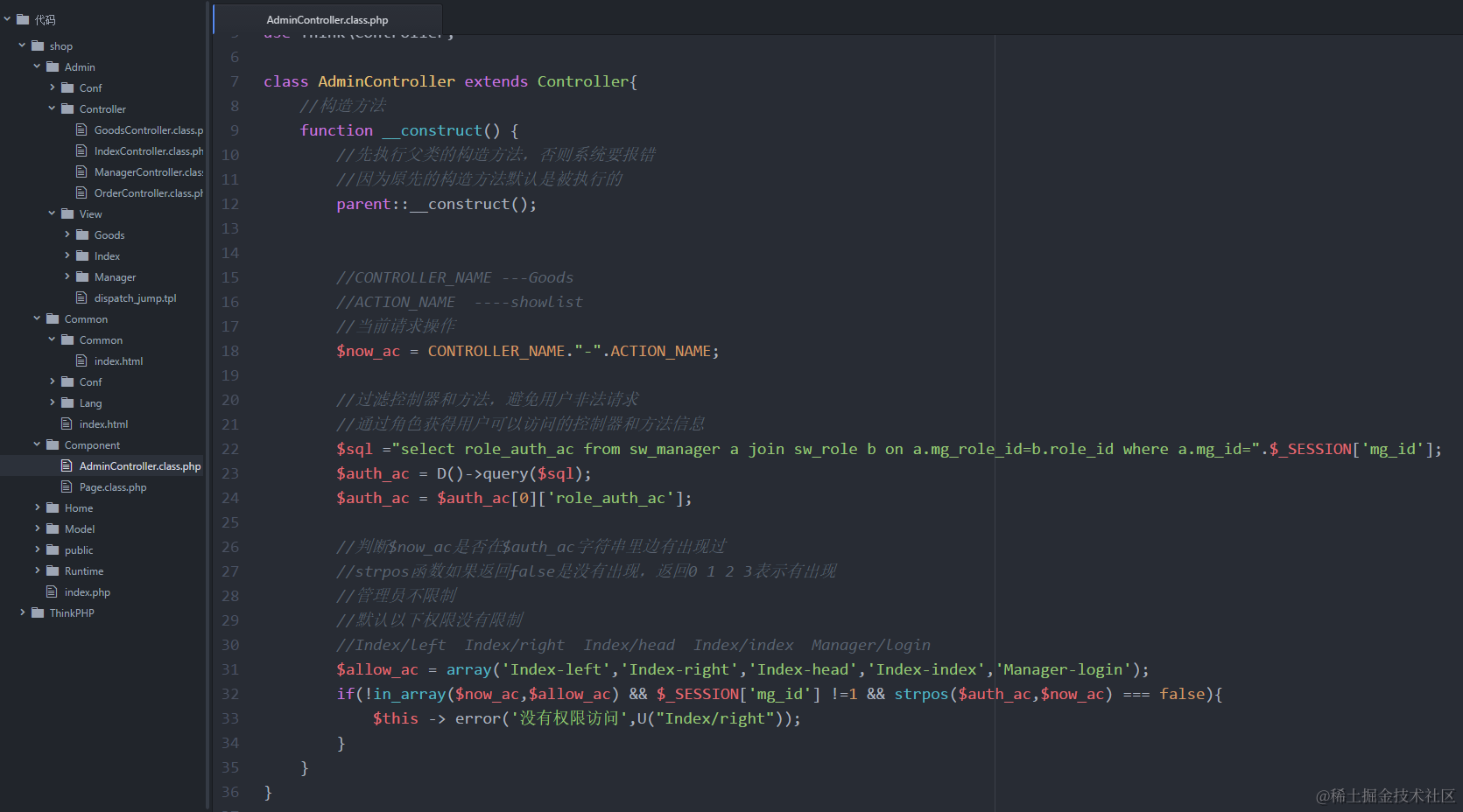 1. 在新父类控制器AdminController里边实现每次访问控制器和操作方法过滤
