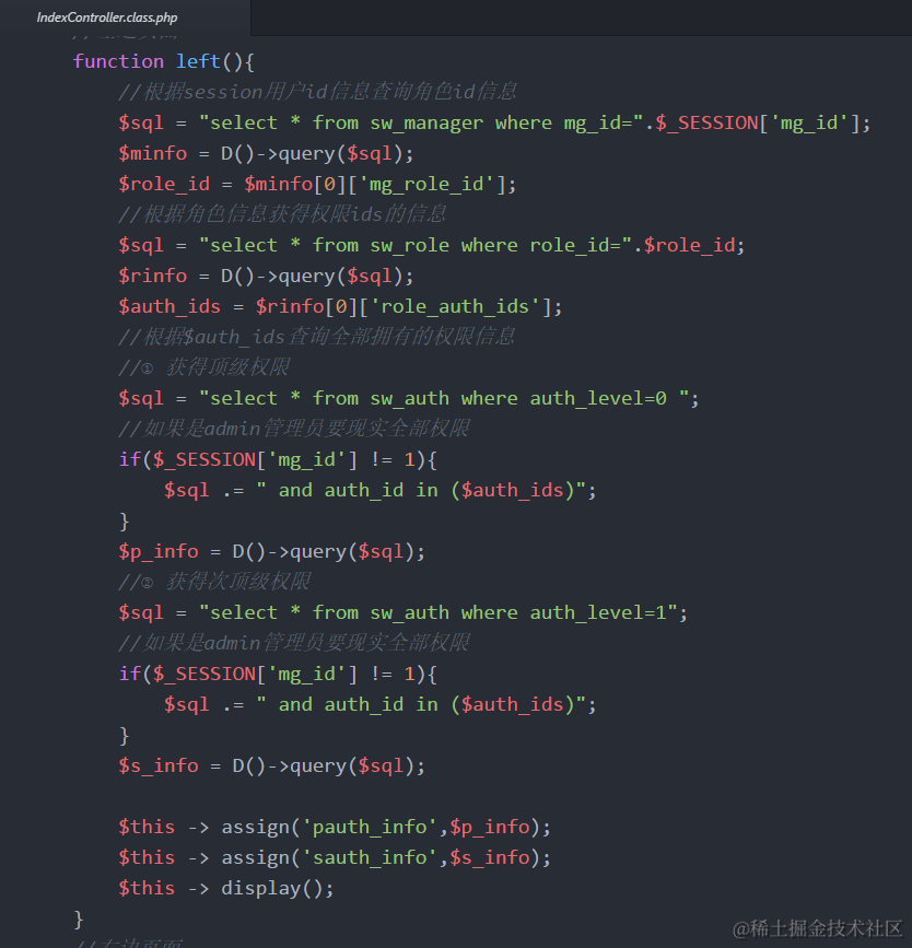 b) 在左边(Admin/Index/left)显示对应的权限信息