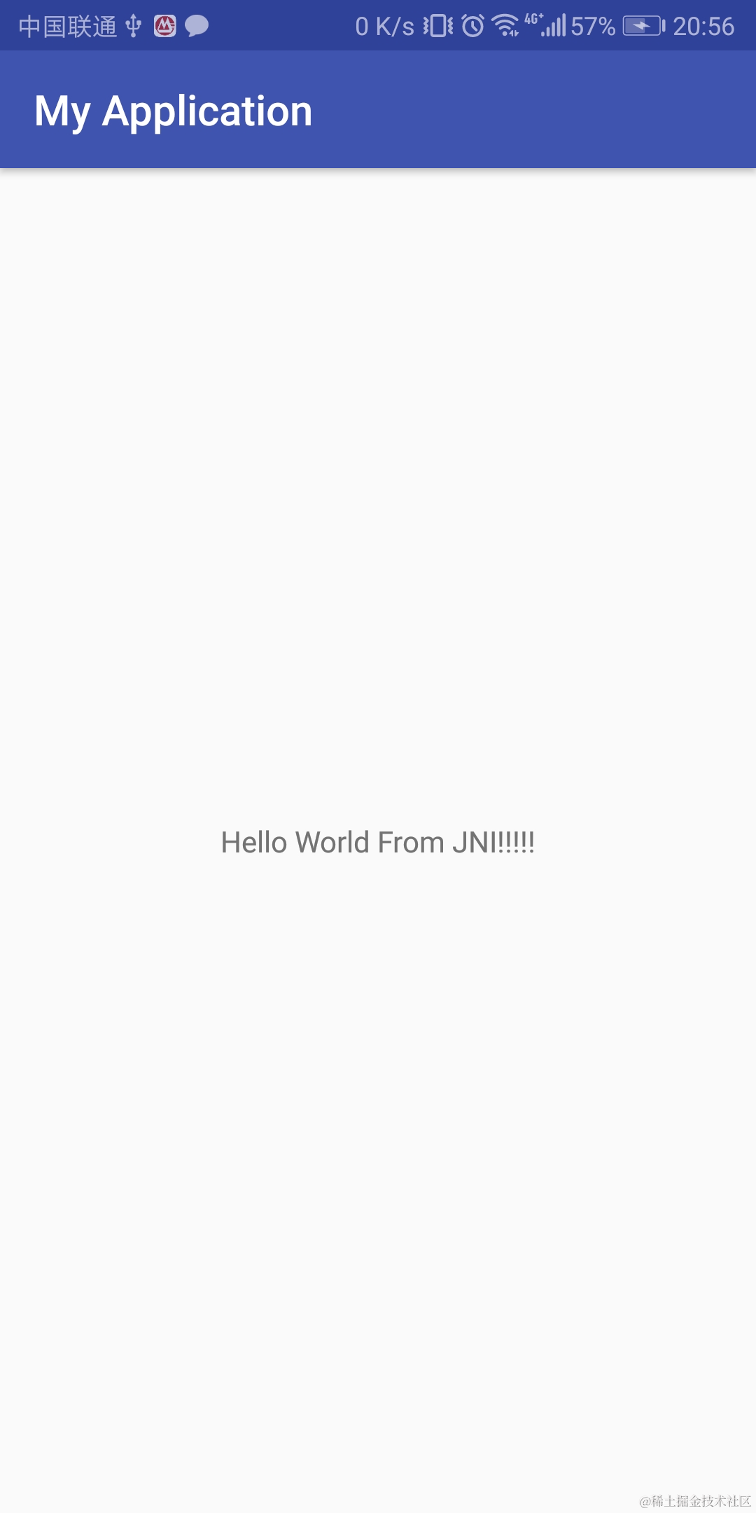 配置好 NDK 开发环境之后,在项目的布局文件添加一个 TextView,通过调用底层自己写好的 C/C++ 代码来返回一个字符串,最后呈现在 TextView上。